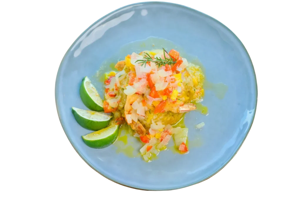 (Salsa de coco, guayaba, mango, criolla, ajillo)